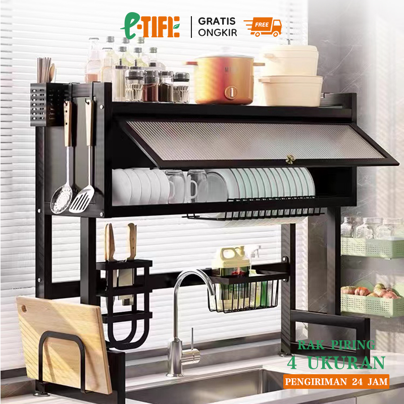 E-TIFE Rak Piring Wastafel Dapur Stainless Steel Multi-fungsi Dengan Penutup Rak Piring Tertutup