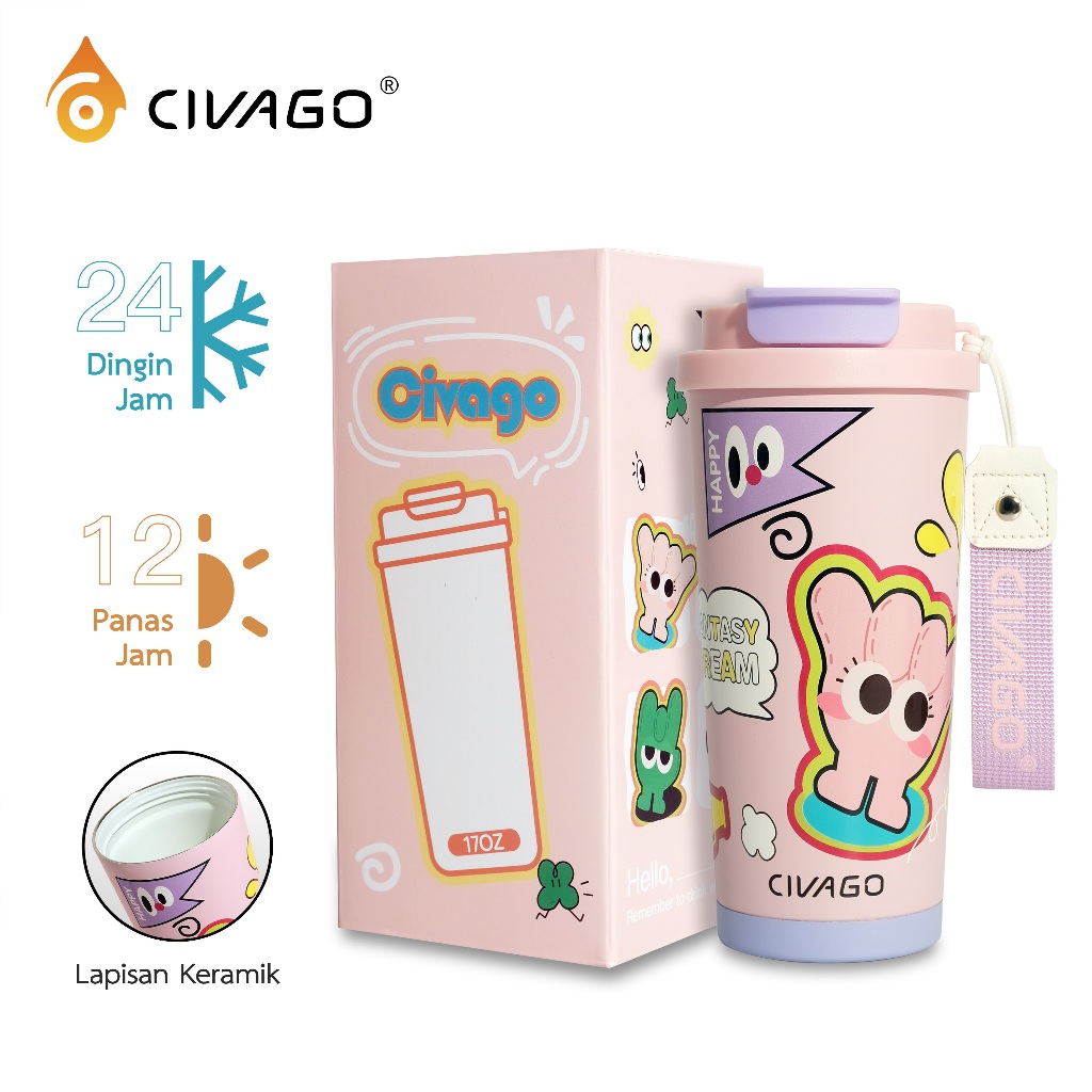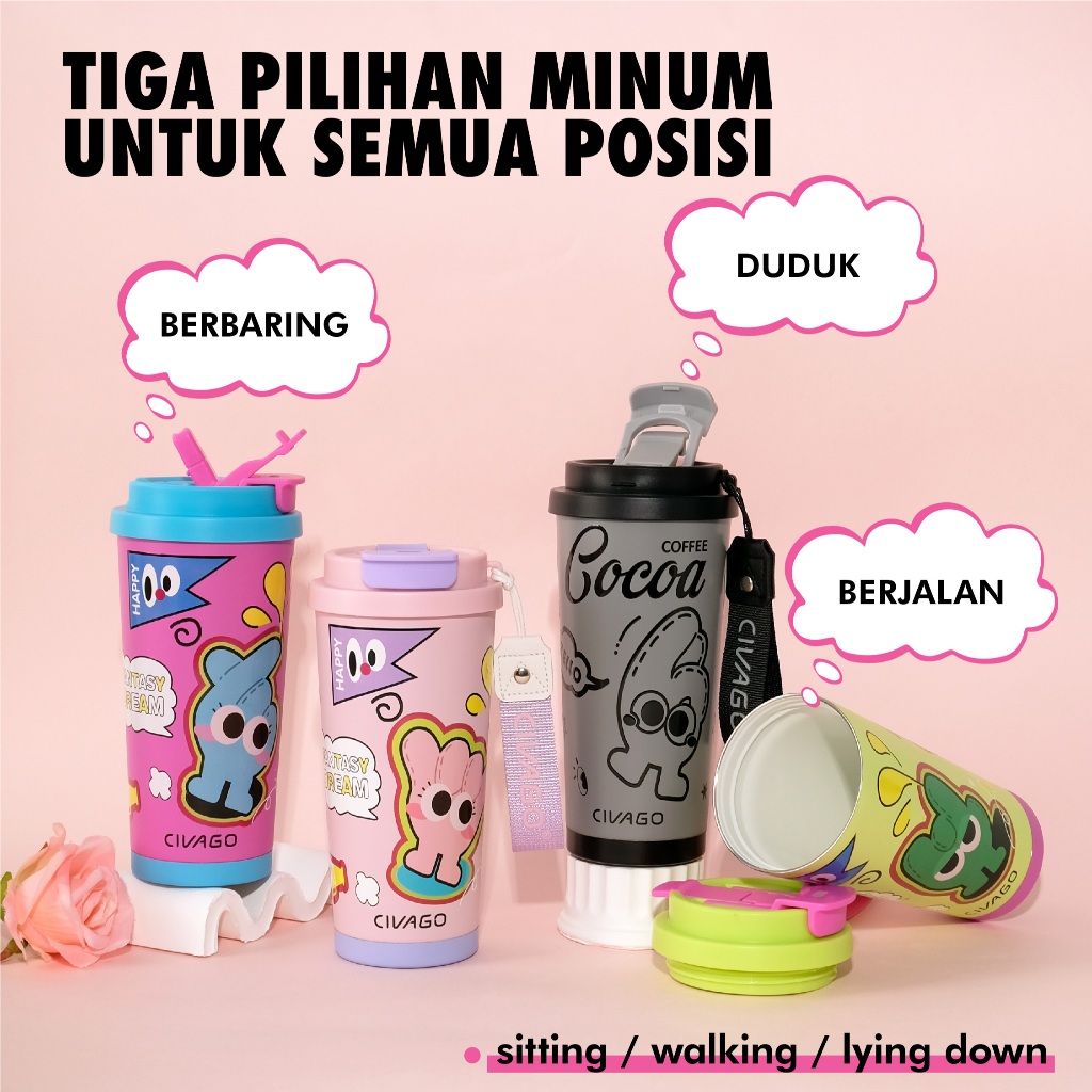 TUMBLER ISOLASI 502ML VAKUM DENGAN SEDOTAN GELAS KOPI KERAMIK KAPASITAS BESAR SERI KARTUN