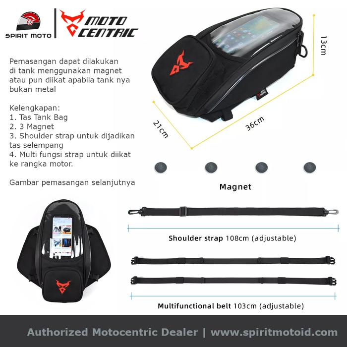 MOTOCENTRIC TANK BAG WITH PHONE HOLDER | TAS TANGKI MOTOR TOURING RIDE TEMPAT HP - MERAH
