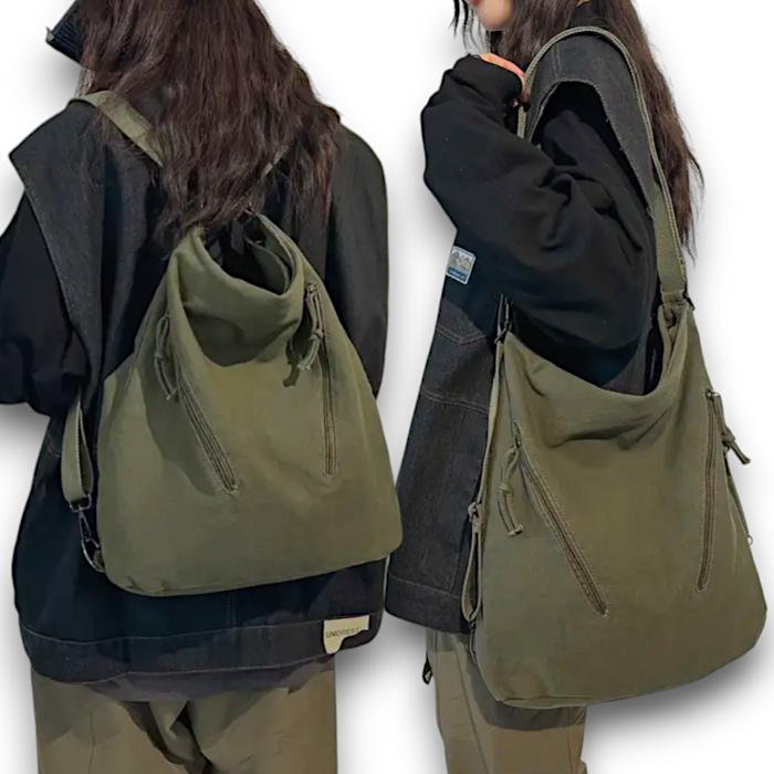 [Beli Lokal] Satu Alat HOBO Unisex 2 in 1 Ransel + Tas Selempang Bahan Kanvas Tebal Premium - Choco Caramel