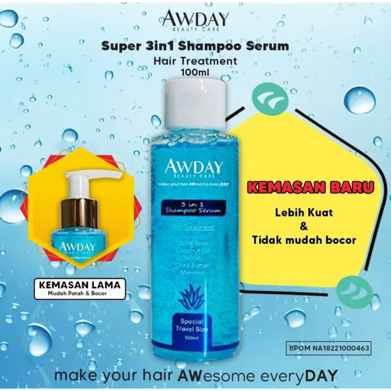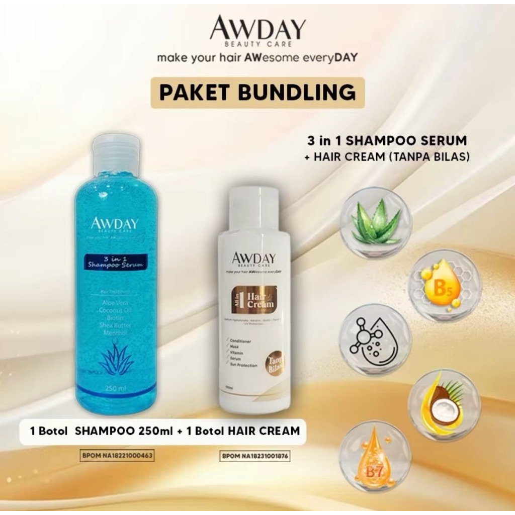 PAKET MURAH Awday Shampoo 3 in 1 dan Hair Cream Cepat Menumbuhkan Rambut BPOM HALAL