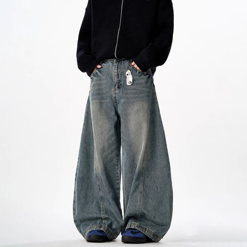 Celana Jeans Unisex Cut Sabit Amerika Washed Vintage - Longgar Cut Lurus & Gaya Baggy