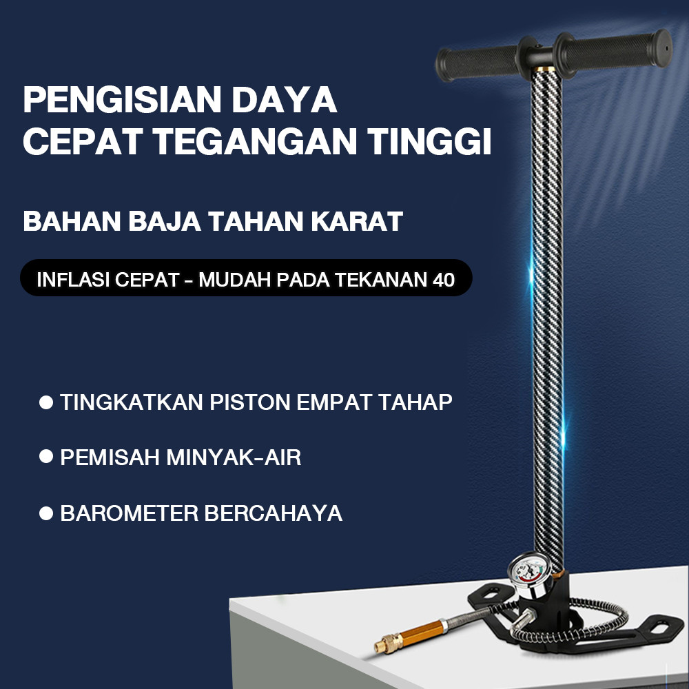 Pompa PCP Barracuda 6000 psi 4 Stage Manometer Pompa Udara Lipat Tekanan Tinggi Baja Tahan Karat Inflator Sepeda Mobil M