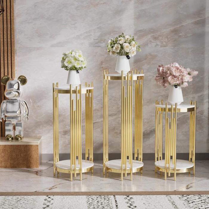 Meja Sudut Standing Flower/Pola Marmer Meja Hias Standing Pot/ Hitam Dan Putih/Meja Tamu Shabby Murah Meja/Cofee Table S