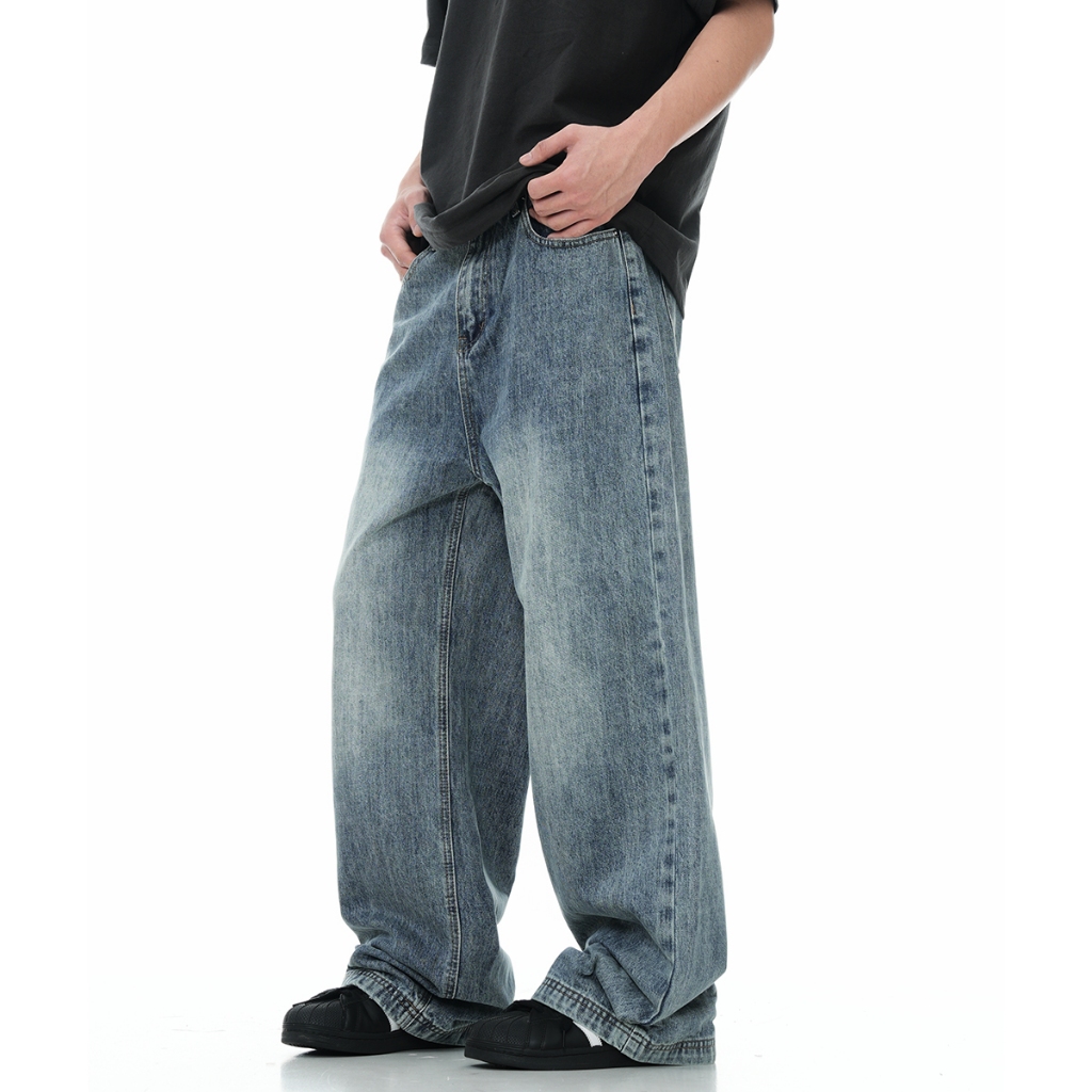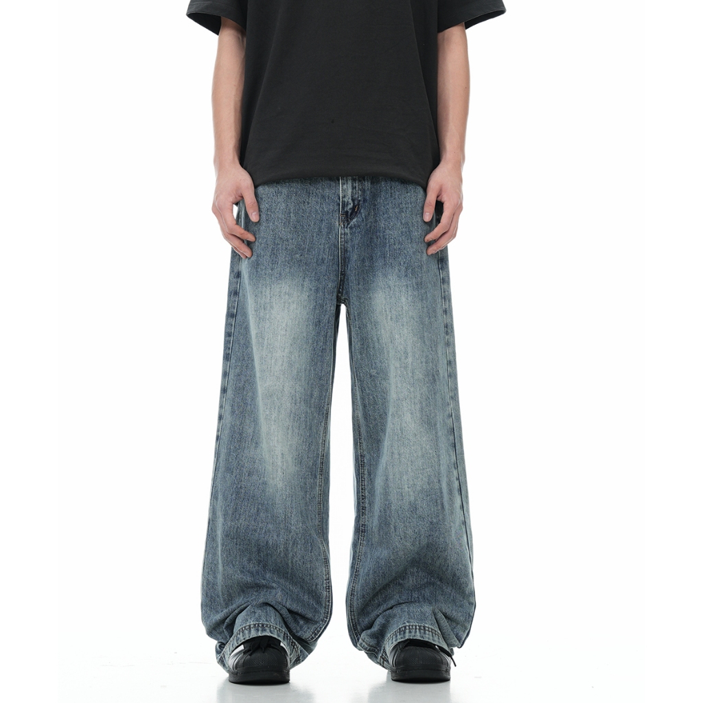 Celana Jeans Pria Korean Retro Style Washed Loose Fit Baggy Bahan Premium Santai