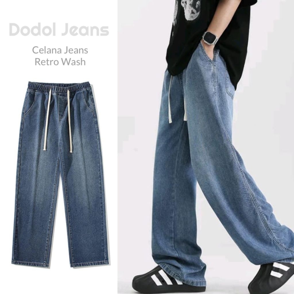 Celana panjang jeans pria denim style vintage pinggang karet celana gombrong pria jeans cowokdewasajeans kulot jumbo kor