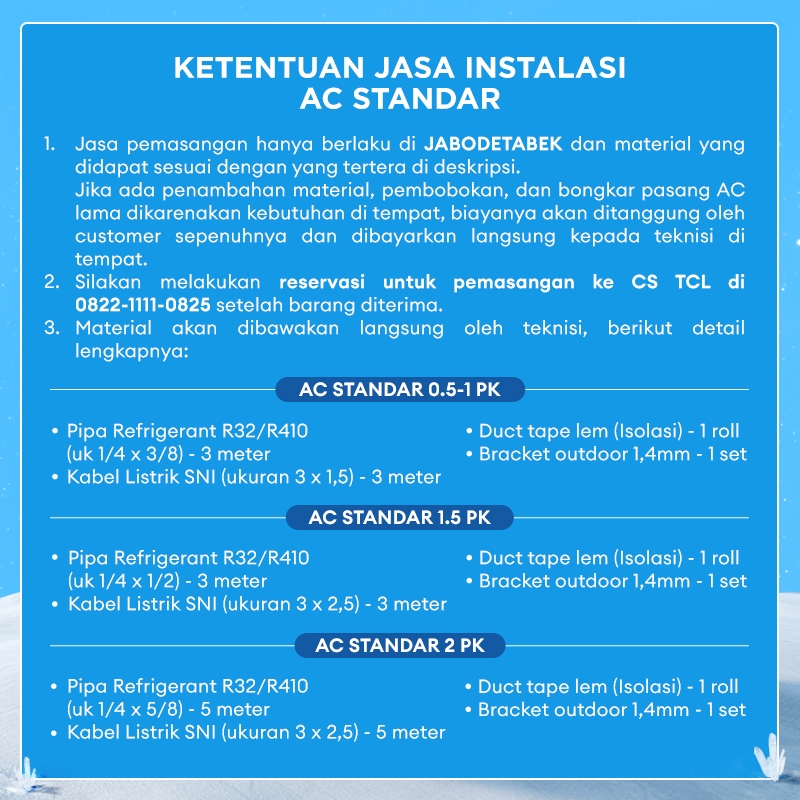 TCL AC TAC 05 CSD/XBS 0.5 PK AC Low Watt [INDOOR + OUTDOOR ONLY] - 1/2 PK Mini Full Set - 1 2 PK Baru - Tersedia Pemasangan Jabodetabek