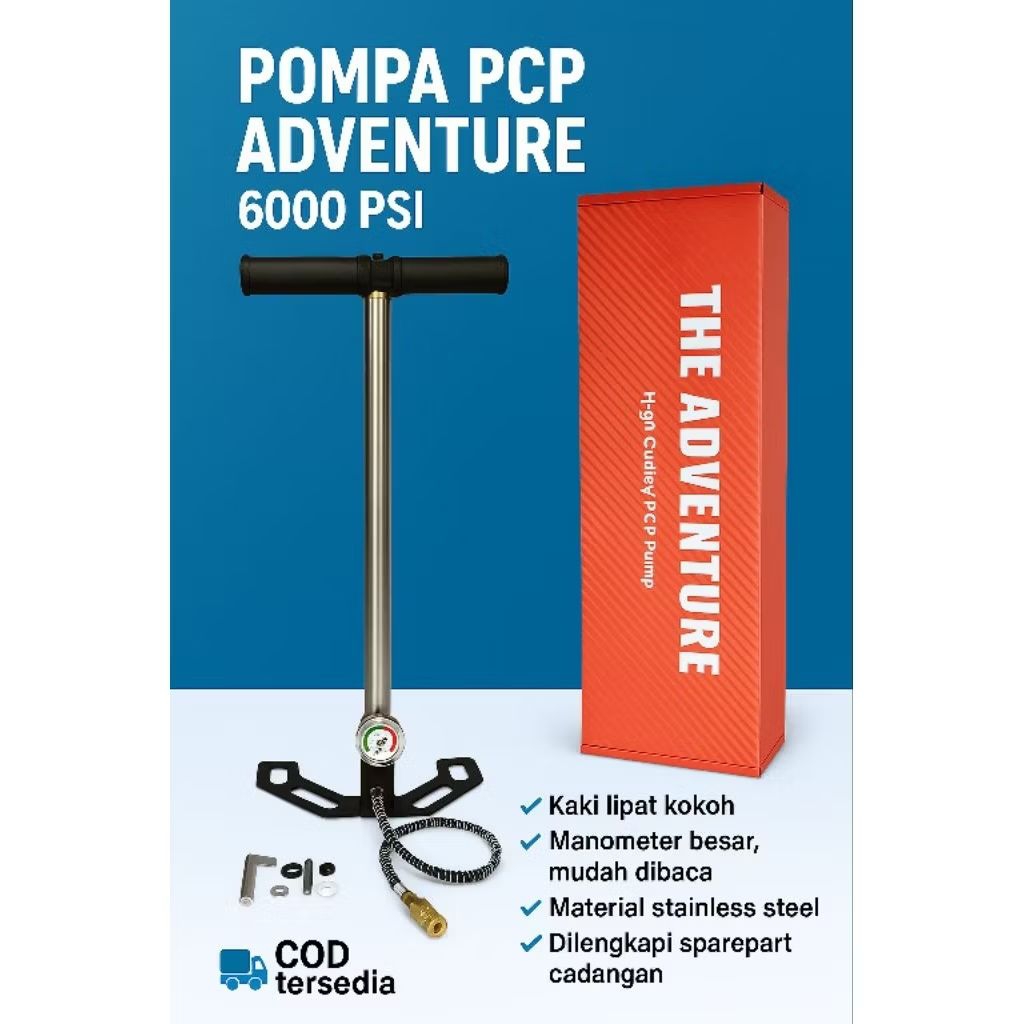 Pompa PCP Adventure 6000 PSI Kaki Lipat Manual High Pressure + Selang & Sparepart