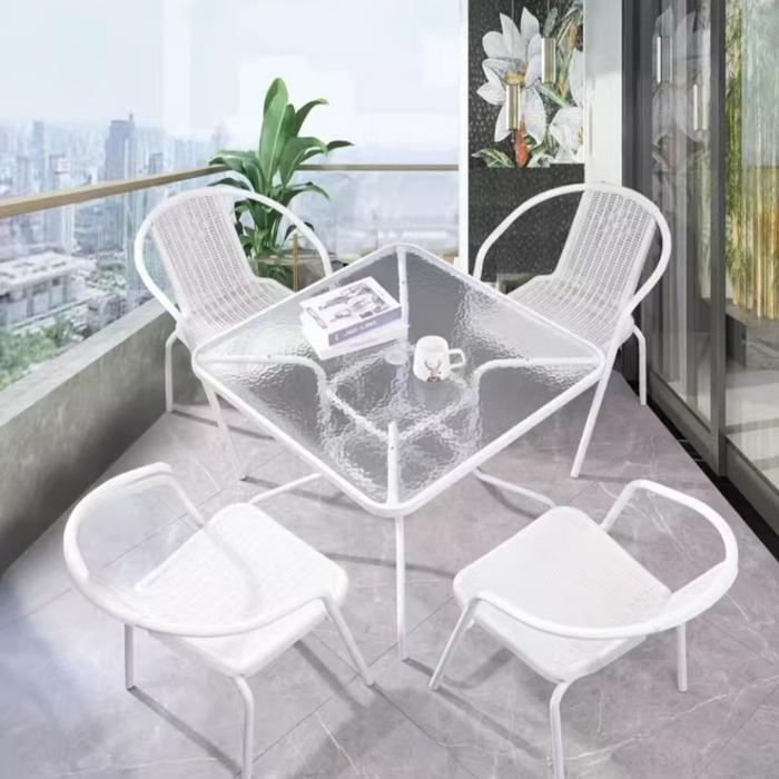 Furnibest Meja Outdoor Meja Teras Meja Taman Meja Makan Meja Bundar Kaca Meja Cafe - 12080 Putih