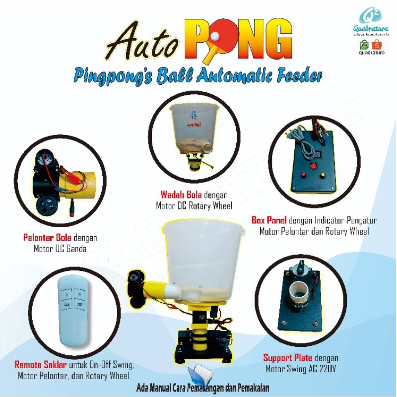 Swing Autopong Robopong Alat Mesin Pengumpan Bola Pingpong Tenis Meja Otomatis Quadrature