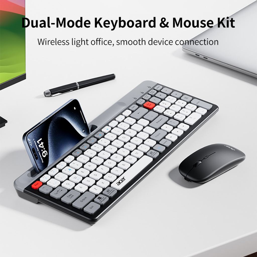 Acer OKR215 Dual-Mode Wireless Keyboard & Mouse Set With Holder 100-Key Layout Quiet & Comfortable