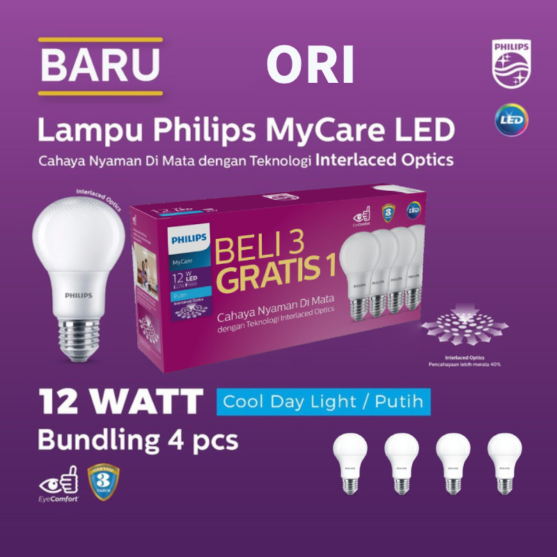 Lampu Philips Lampu LED Philips 4W 6W 8W10W 12Watt Multipack Lampu ledrumah Led Bulb 230V 6500K Putih1PCs/2PCs/4Pcs