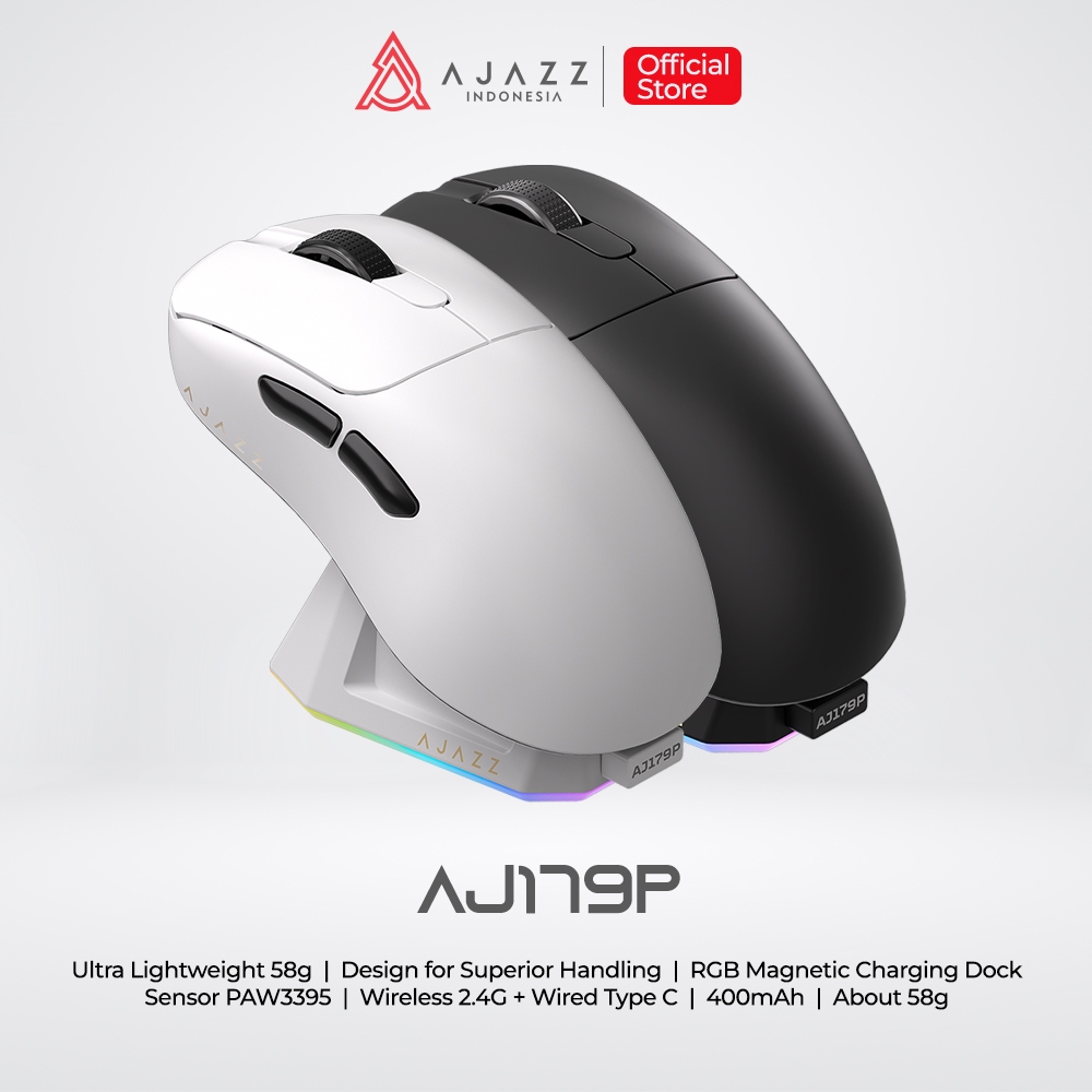 Ajazz AJ179 P Gaming Mouse Dual Mode PAW3395 up to 26000 DPI with RGB Magnetic Charging Dock