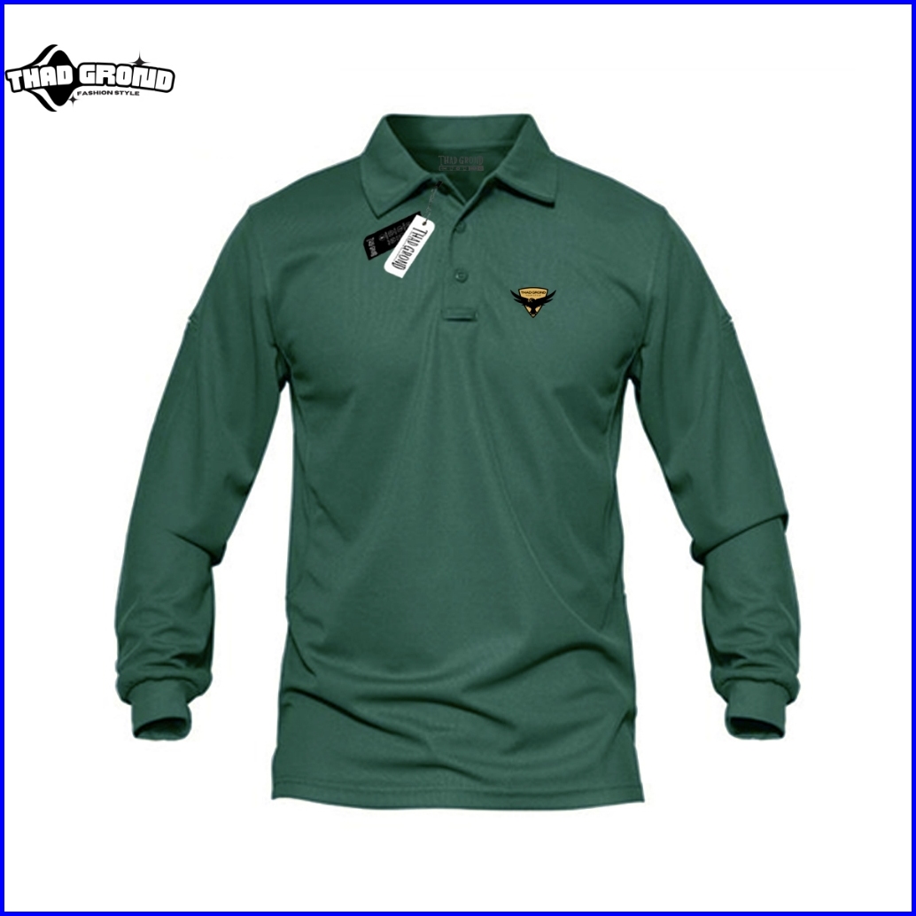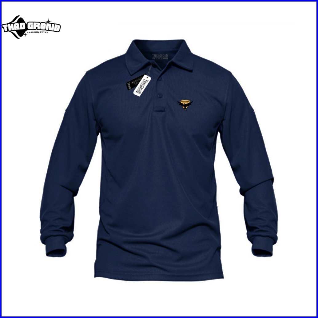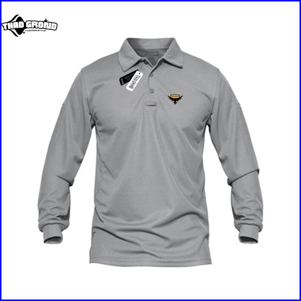 Thad Grond - Polo Shirt Lengan Panjang Logo Perisai Elang Cotton100 Original Polo Abu Misty