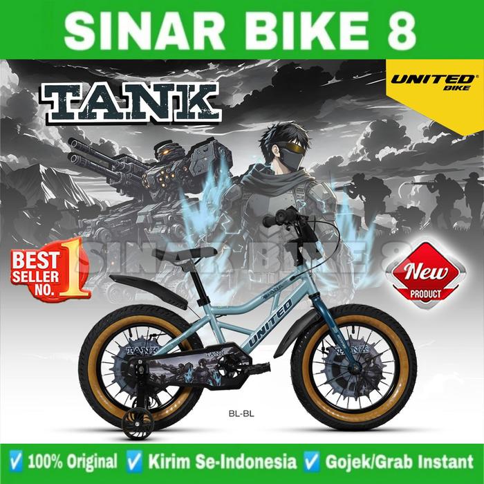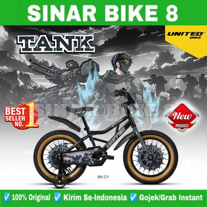 SEPEDA ANAK LAKI UKURAN 12, 16 DAN 18 INCH BMX UNITED TANK BAN JUMBO - BK-GY, 12 INCH