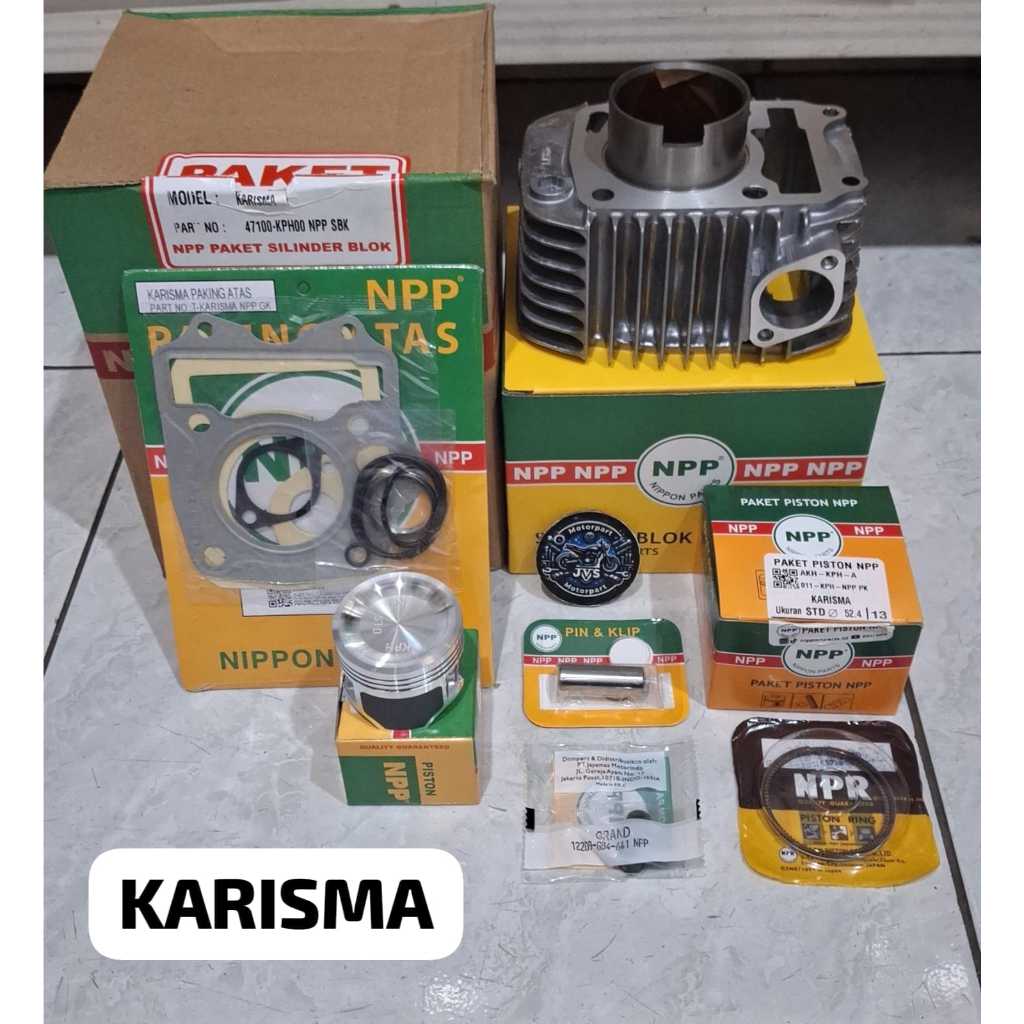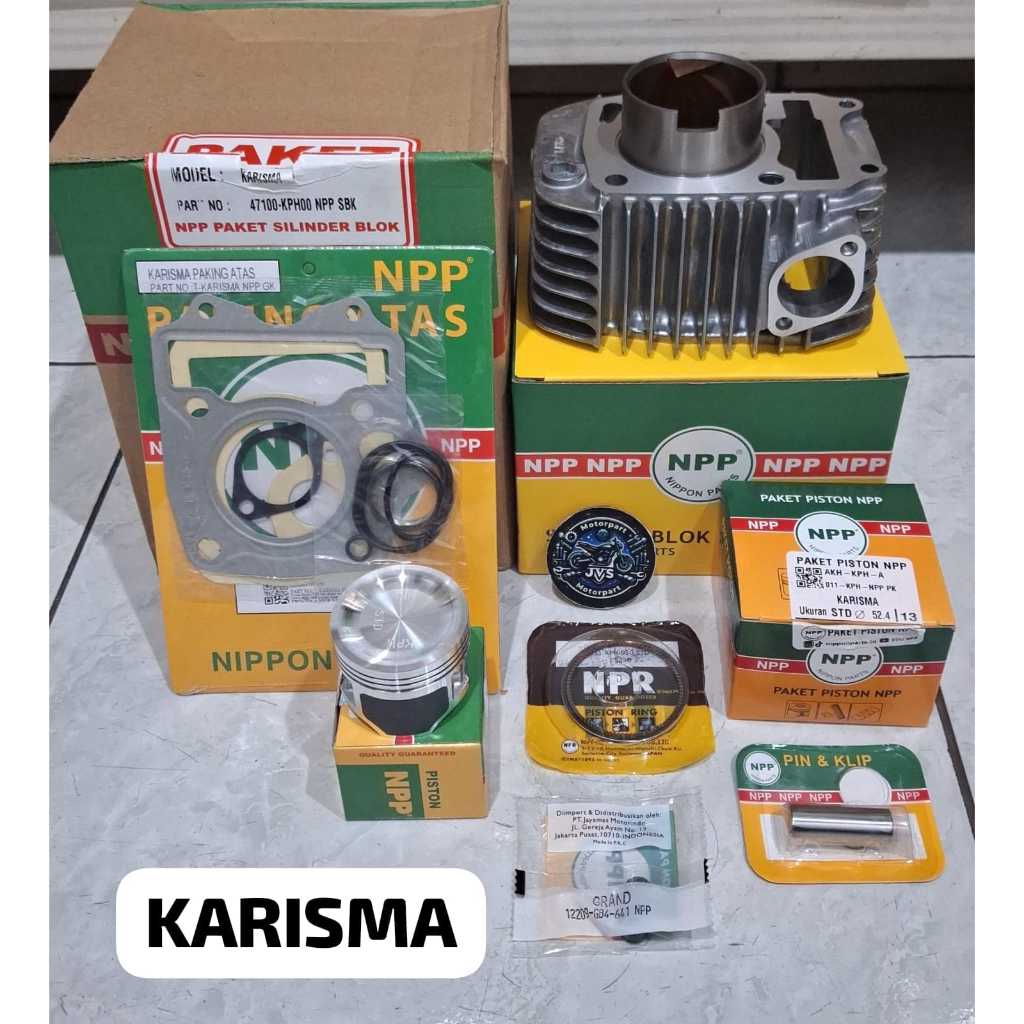 Jvs - Blok Seher Boring Silinder Karisma, Supra X 125, Kirana Plus Piston Kit+Topset+Seal Klep Kph Original Npp