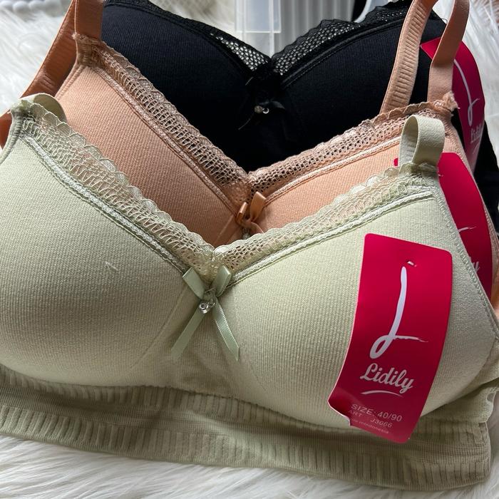 PAKET ISI 2&3 BRA LIDILY J3066 Tanpa Kawat Bahan rajut premium Busa Tipis no kawat Cup A- B Kait 3