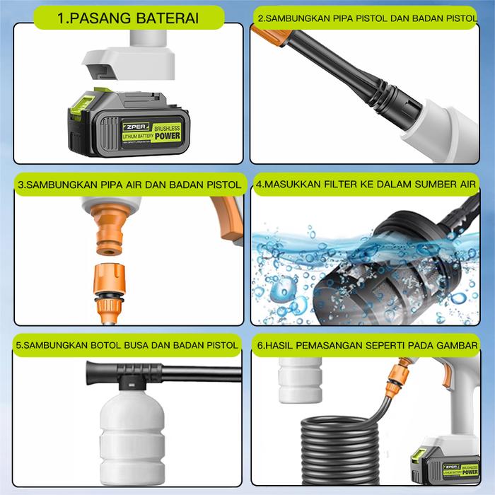 ZPER 500PSI Alat Cuci Mobil Air Tekanan Tinggi Alat Portable Nirkabel Untuk Nyuci Mesin Cuci Lithium