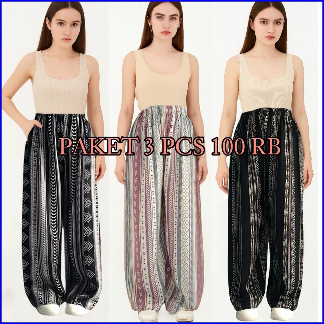Paket Hemat Kulot Rayon Motif Premium Celana Santai Hommy Wanita