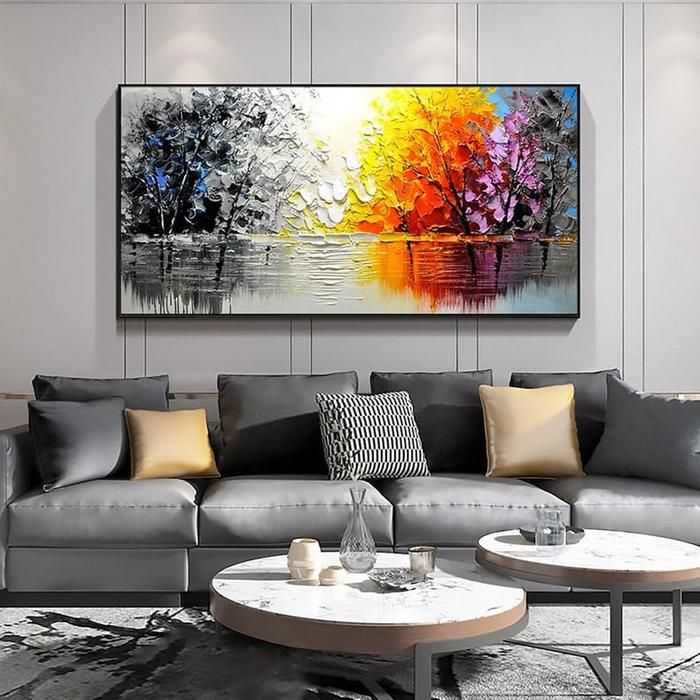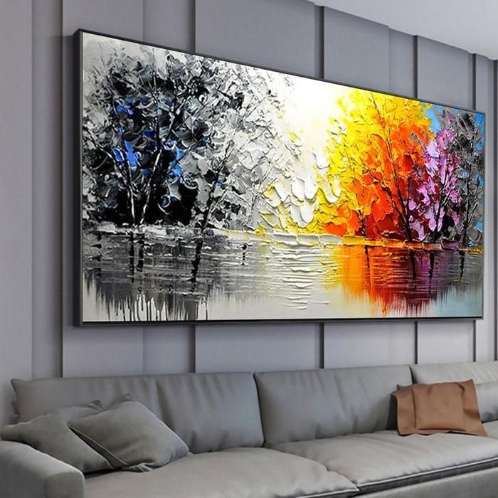 lukisan abstrak pohon warna full texture lukisan kanvas berkualitas best dekorasi ruangan modern