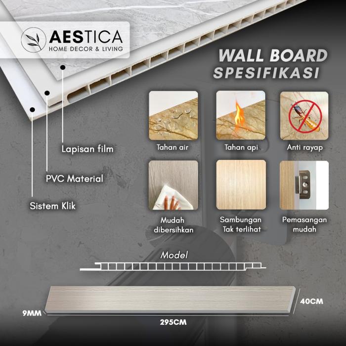 PVC Wall Board Papan Panel Dinding Kayu Marmer Granite 3M Aestica