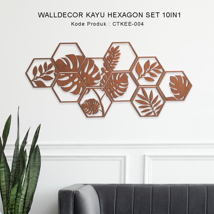 Hiasan dinding kayu hexagon isi 10pcs / walldecor ruang tamu / dinding teras / dinding kamar CTKEE04