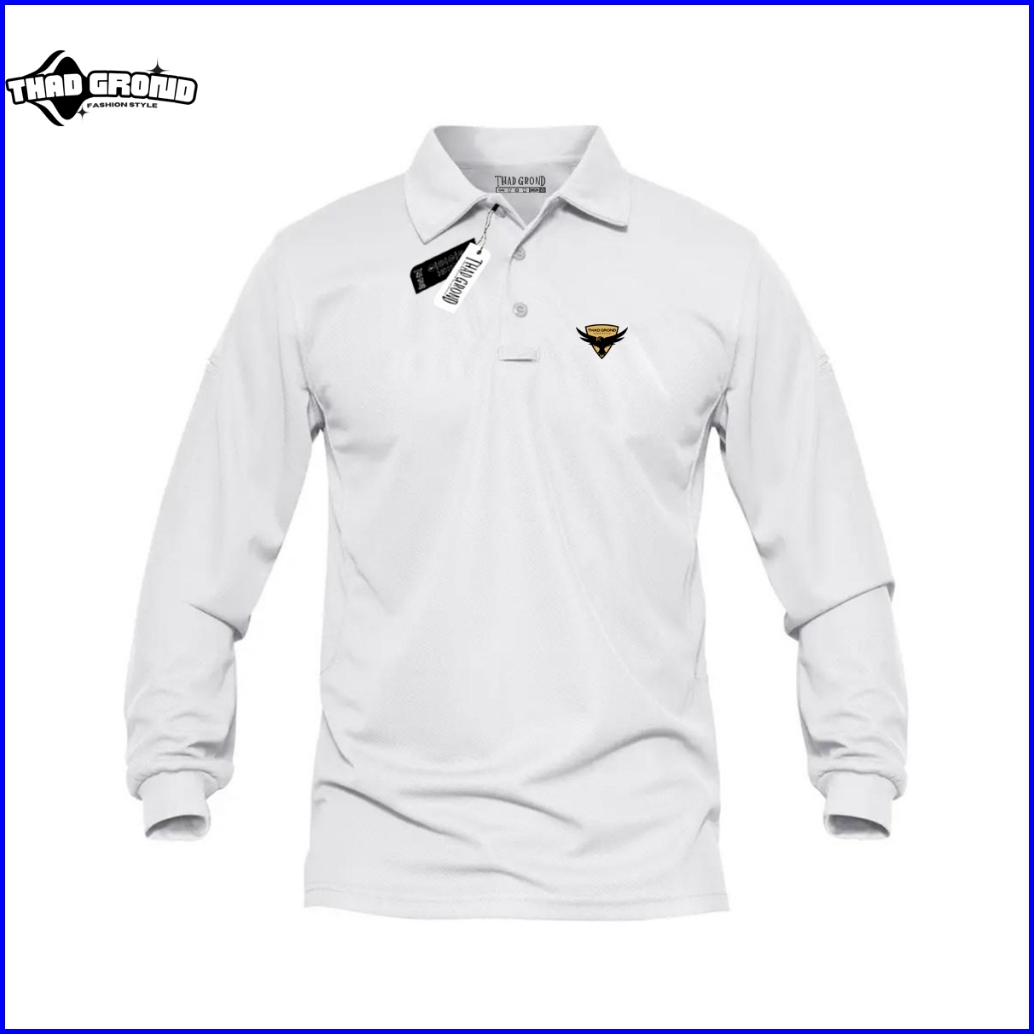 Thad Grond - Polo Shirt Lengan Panjang Logo Perisai Elang Cotton100 Original Polo Abu Tua