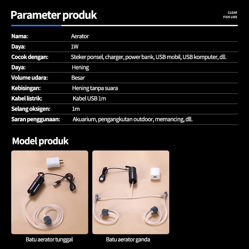 Aerator Aquarium USB Pompa Udara Akuarium Ikan Airator Gelembung/Aerator Fish Tank Oxygenator USB