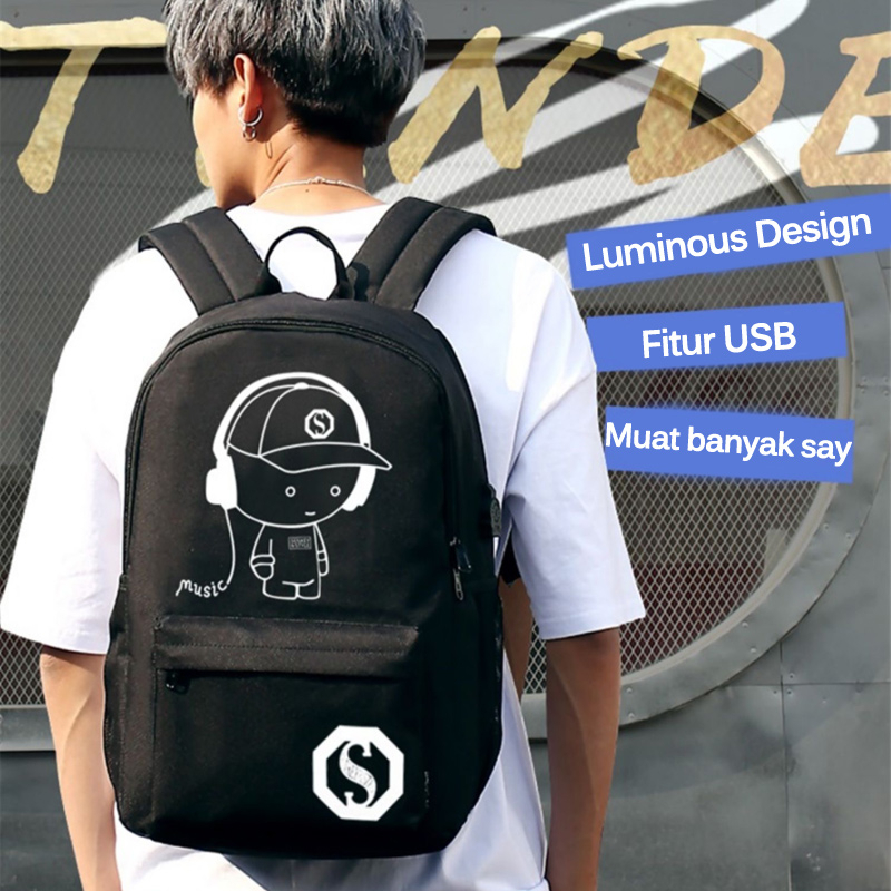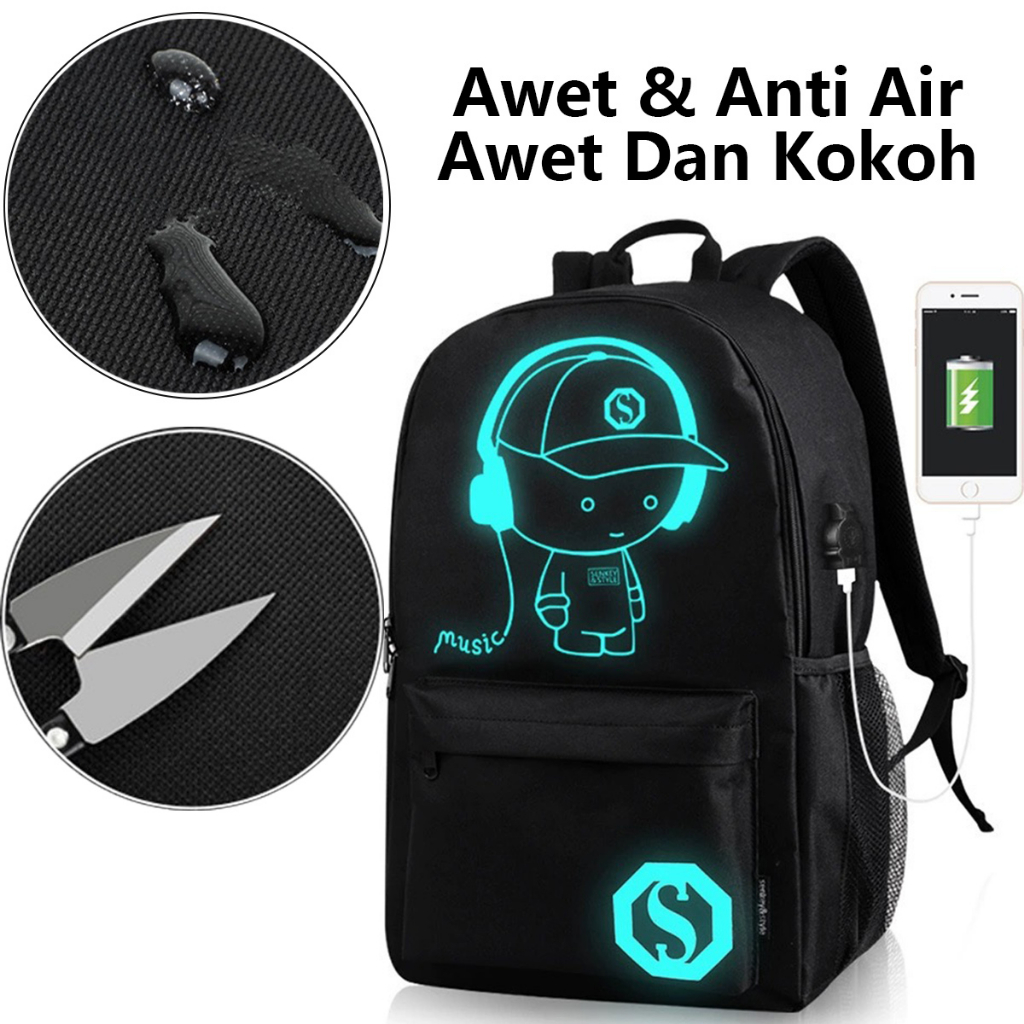 Bopai Tas Ransel Sekolah Anak Pria Stylish Backpack Tas Pungung Tas Luminous t USB Charger TCR03-A