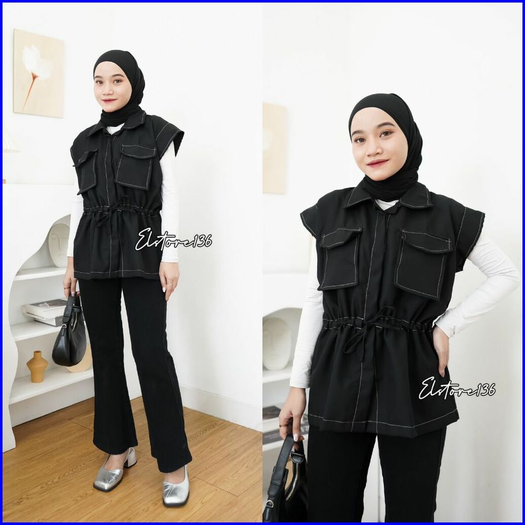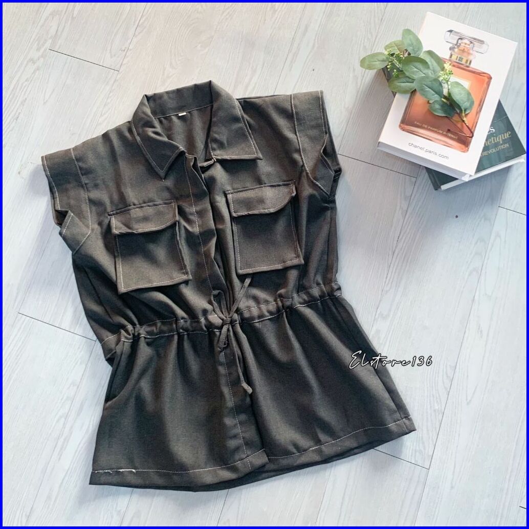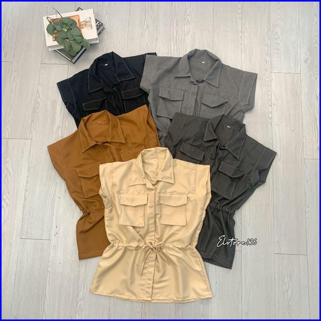 A Wear - Ghea Top Outer Tangan Pendek Pocket Shirt Semiwoll