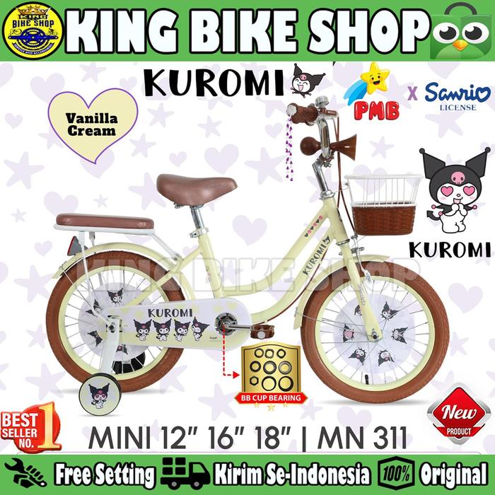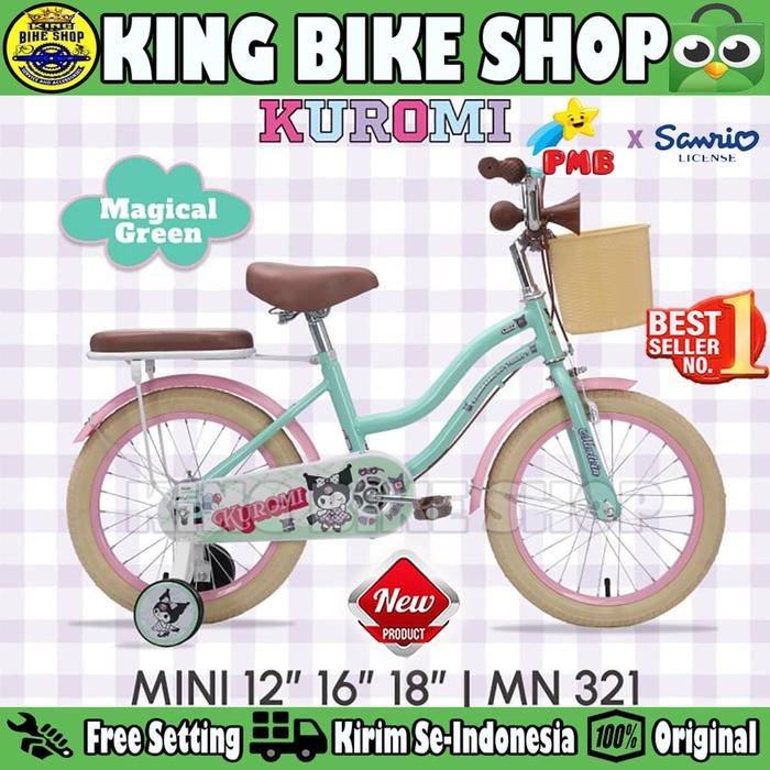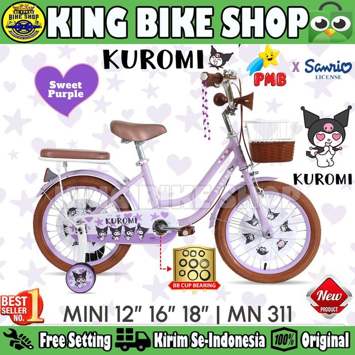 SEPEDA ANAK PEREMPUAN PMB KUROMI MN 321//KUROMI MN 311 BAN 2.125 UKURAN 12 16 18 INCH KERANJANG - PINK 321, 12 INCH