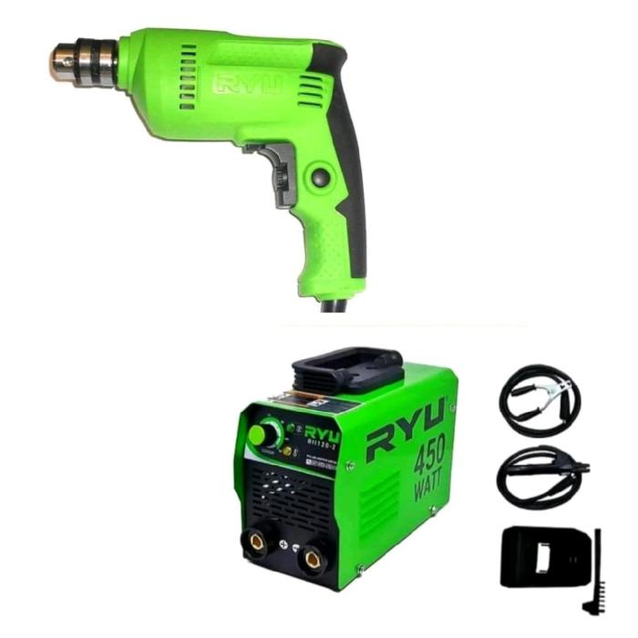 Paket Ryu Murah : Mesin Las 450Watt + Mesin Bor 10Mm + Gurinda 4" Ryu - Bor + Gerinda