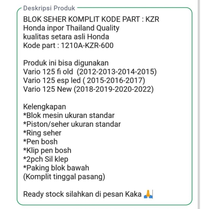 Blok Seher+Piston Kit Vario 125 Fi Old Vario 125 Esp Led Vario 125 New - Oem Impor Quality