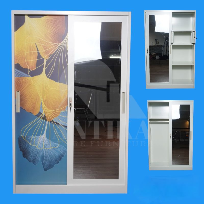 Lemari Pakaian Besi Sliding Ukuran 120x50x185 ( Gratis dikemas paking kayu - Se indonesia )