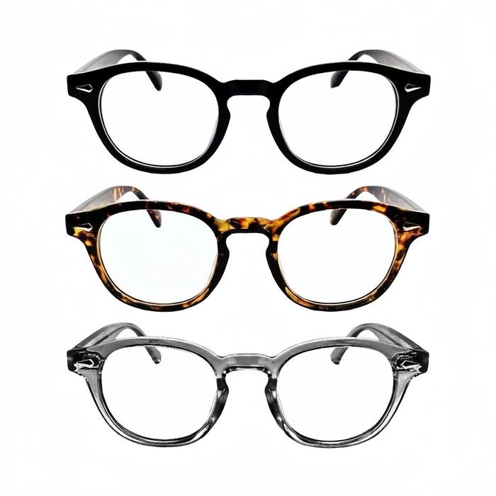 (Beli 1 Free 1) Amlemtosh - Frame Kacamata Kotak Semi Bulat Plastik Tebal Wanita Pria Eyewear Glasses Mata Normal Minus