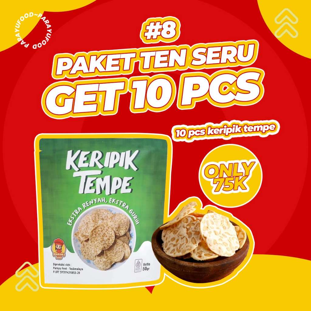 Parayu Food - Paket 10 PCS Keripik Tempe Sagu Original Gurih Renyah 50 Gram