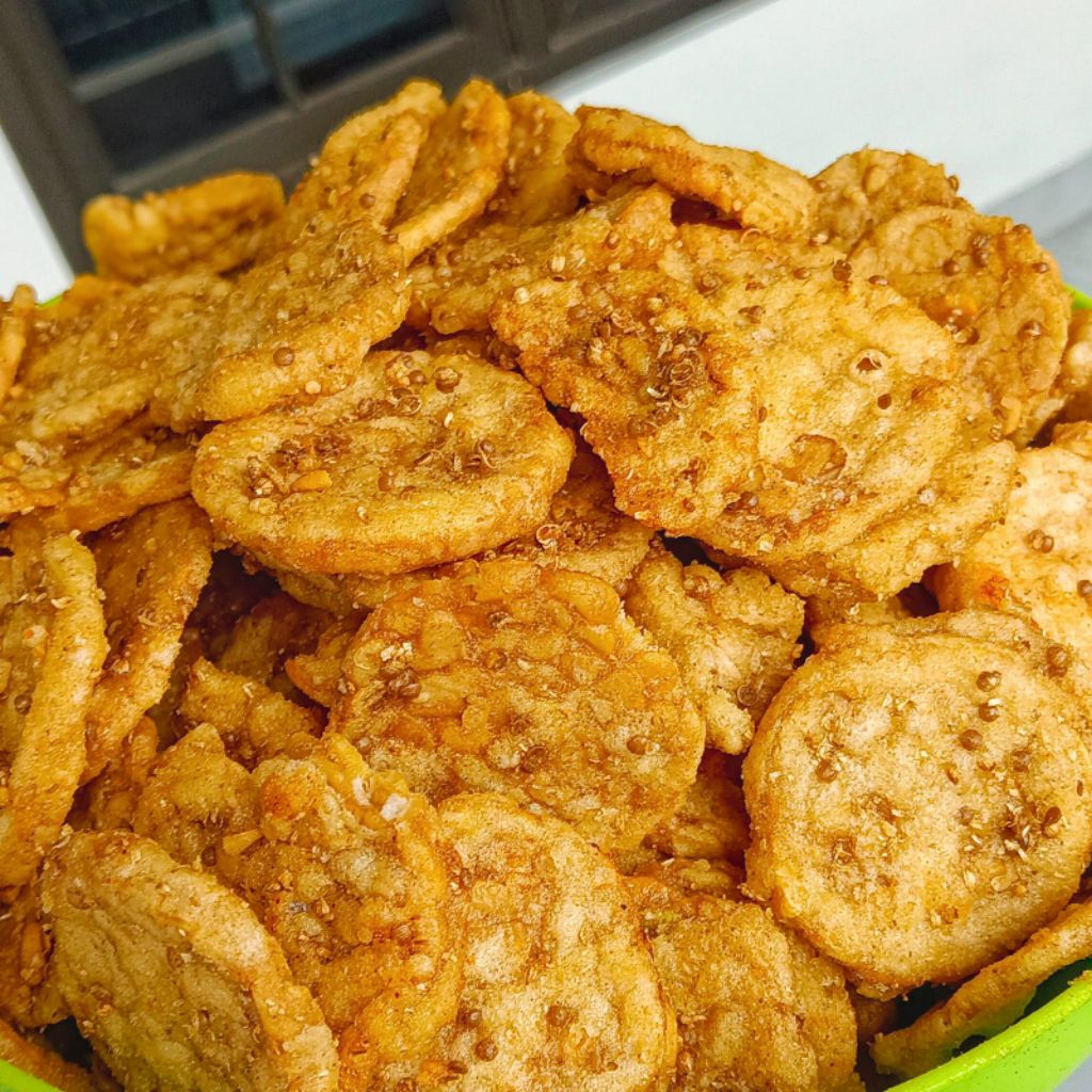 paket hemat keripik tempe mix 4 varian rasa (250gr x 4) cemilan renyah asin gurih manis pedas.
