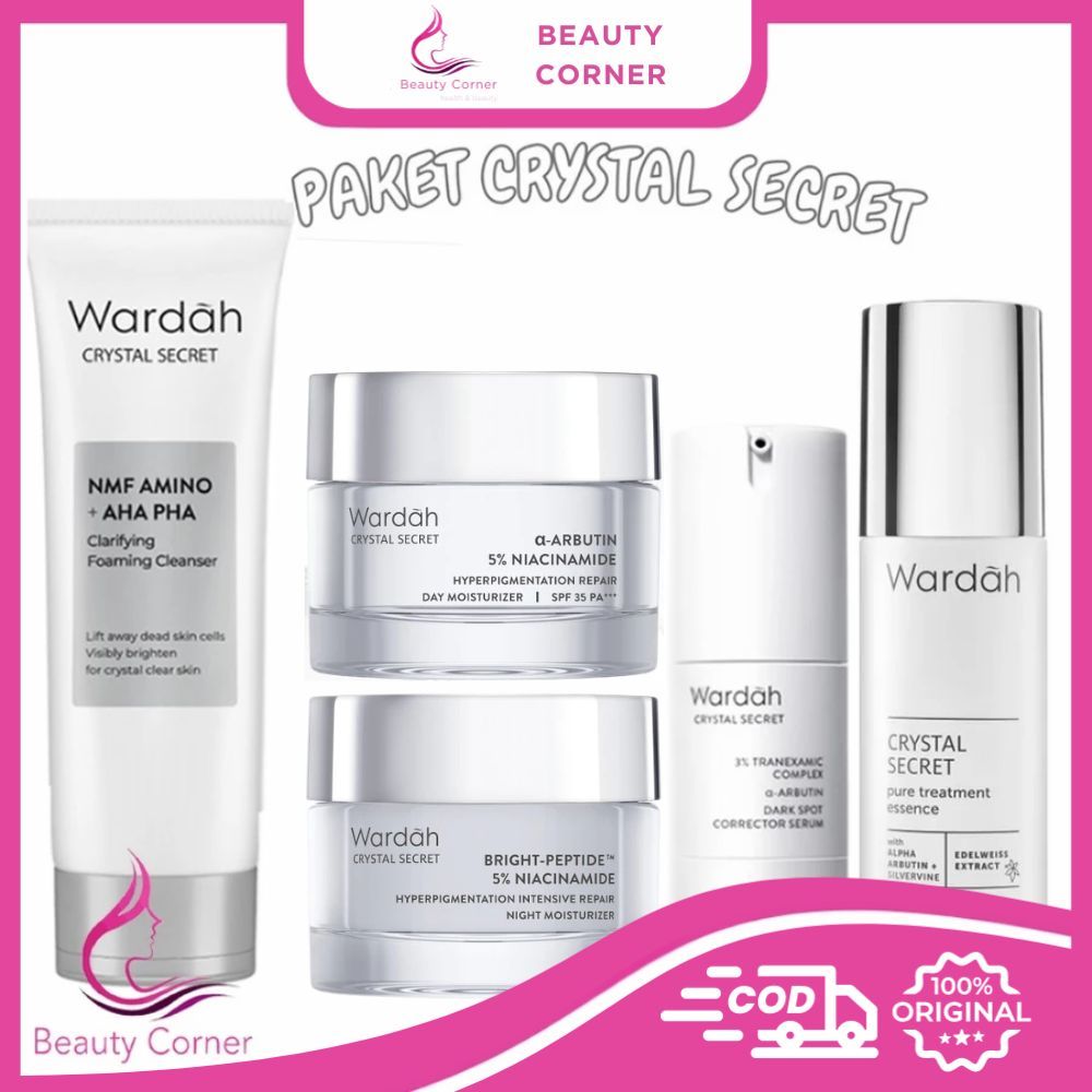 PAKET ISI 5PCS Paket 5 Besar Wardah Crystal Secret | Day Cream | Night Cream | Foaming Cleanser | Serum Dark Spot | Pure