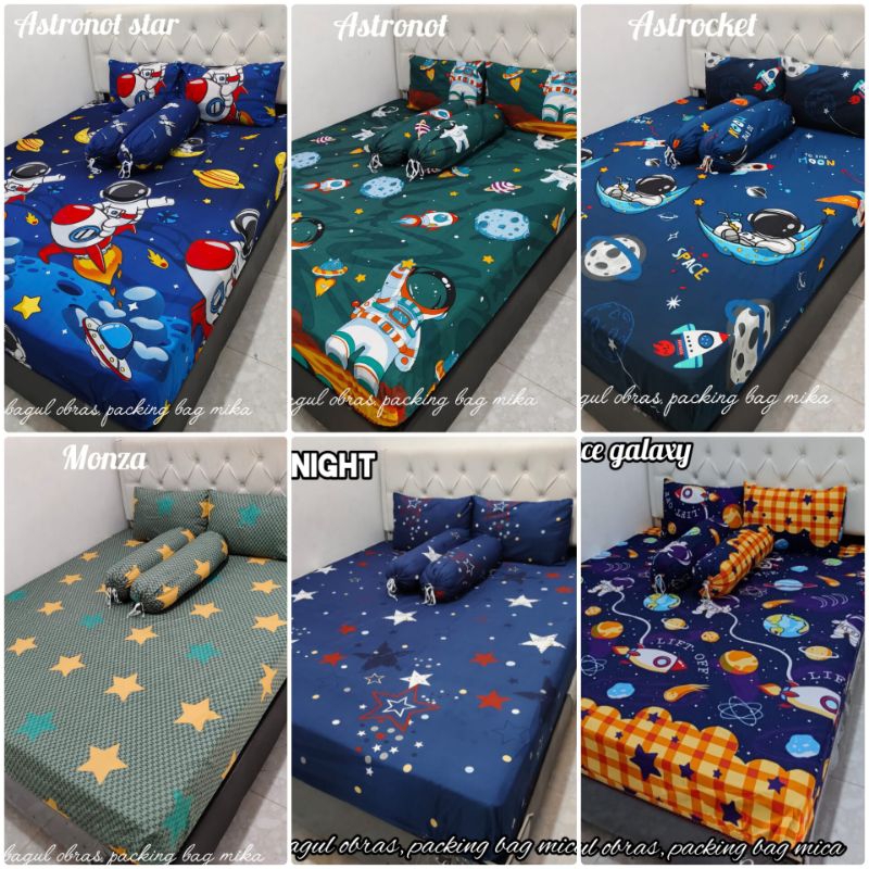 Sprei Karet Anak Cowok Motif Anak Planet Galaxy Outer Space Bulan Bintang Astronot