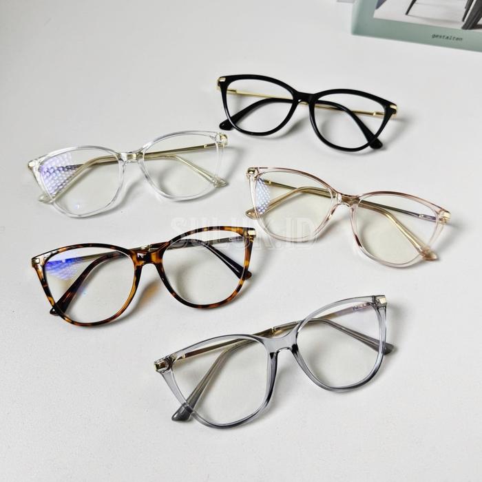 (Beli 1 Gratis 1) Frame Lila - Kacamata Cat Eye Series Antiradiasi Photocromic Bluecromic Minus Normal Silinder Dan Plus