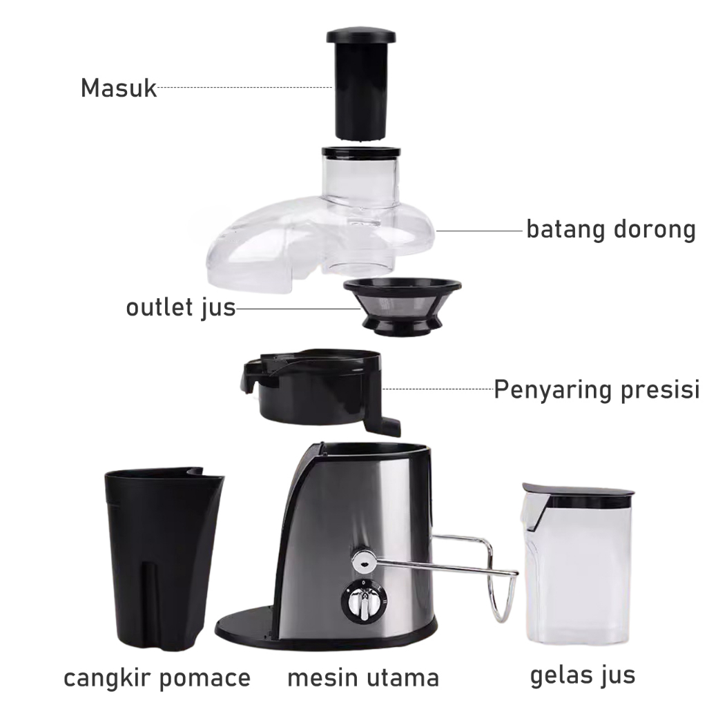 HAN RIVER Slow Juicer Multifungsi 300ML Blender Sari Buah Tanpa Ampas HRZZJ01SS