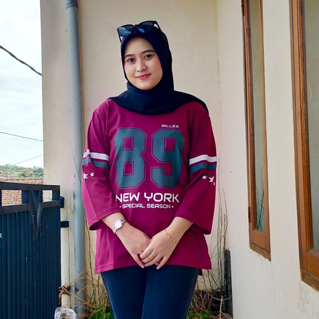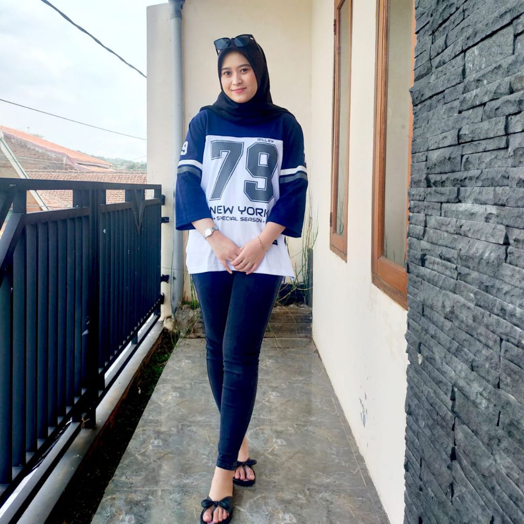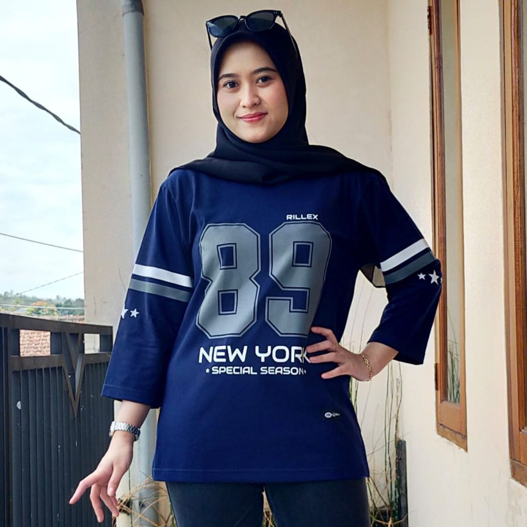 Kaos Atasan Wanita Oversize Lengan 7/8 Motif Number /T-Shirt Sporty Bahan Premium Katun Kombad 20s