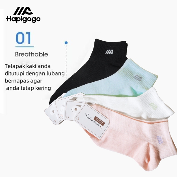 HAPIGOGO-Kaus Kaki Fashion Wanita Kaus Kaki Katun Pendek Wanita 1 Pak 4 Pasang
