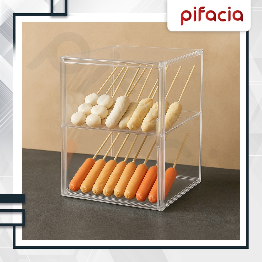 Pifacia Rak Display Etalase 2 Susun Tempat Jualan Sosis Jajanan Anak Bahan Akrilik Jualan Retail