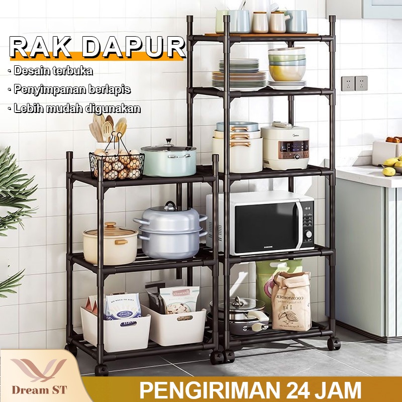 [Dream Street]Rak Dapur Logam Rak 2/3/4/5/6 Susun Rak Penyimpanan Tempat Serbaguna Rak Microwave Oven Rak Susun Logam
