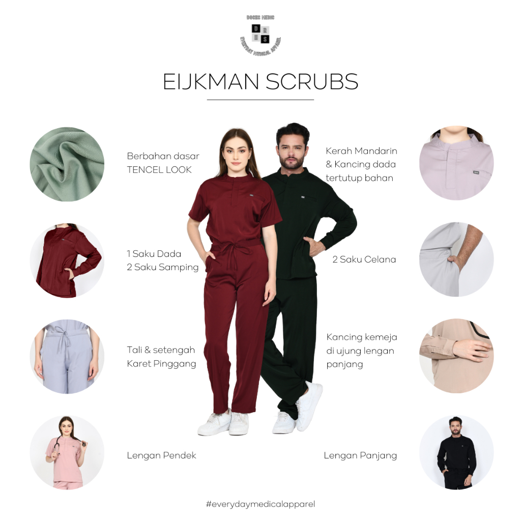 EIJKMAN Scrubs Medis / Baju OK / Baju Jaga Lengan Pendek (The Prime Scrubs By DOCHS MEDIC)