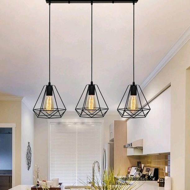 lampu gantung hias ruang tamu minimalis type diamond 3in1 set Hitam