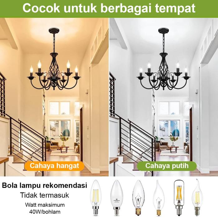 E.Home Lampu Gantung Candle 5/6/8 Heads Vintage Ceiling Lampu Gantung Makan Dekoratif Mewah