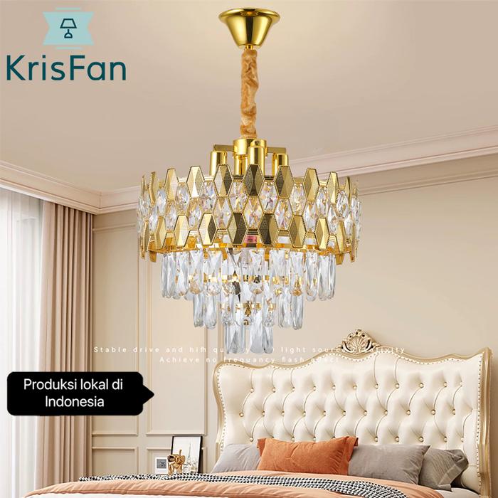 KrisFan Lampu Gantung Kristal Mewah Ruang Tamu LED 3 Warna 40cm Modern Minimalis Ruang Makan Kamar