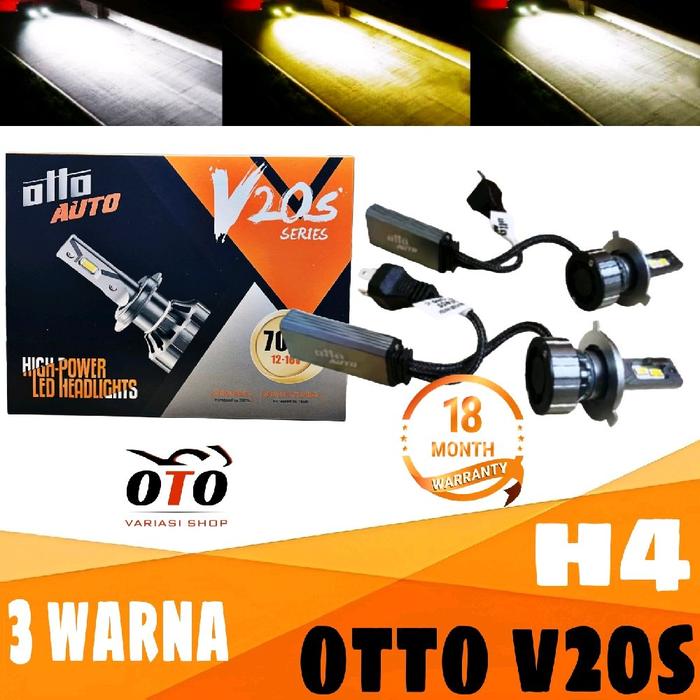 LAMPU LED MOBIL H4 3 WARNA OTTO V20S 70 WATT